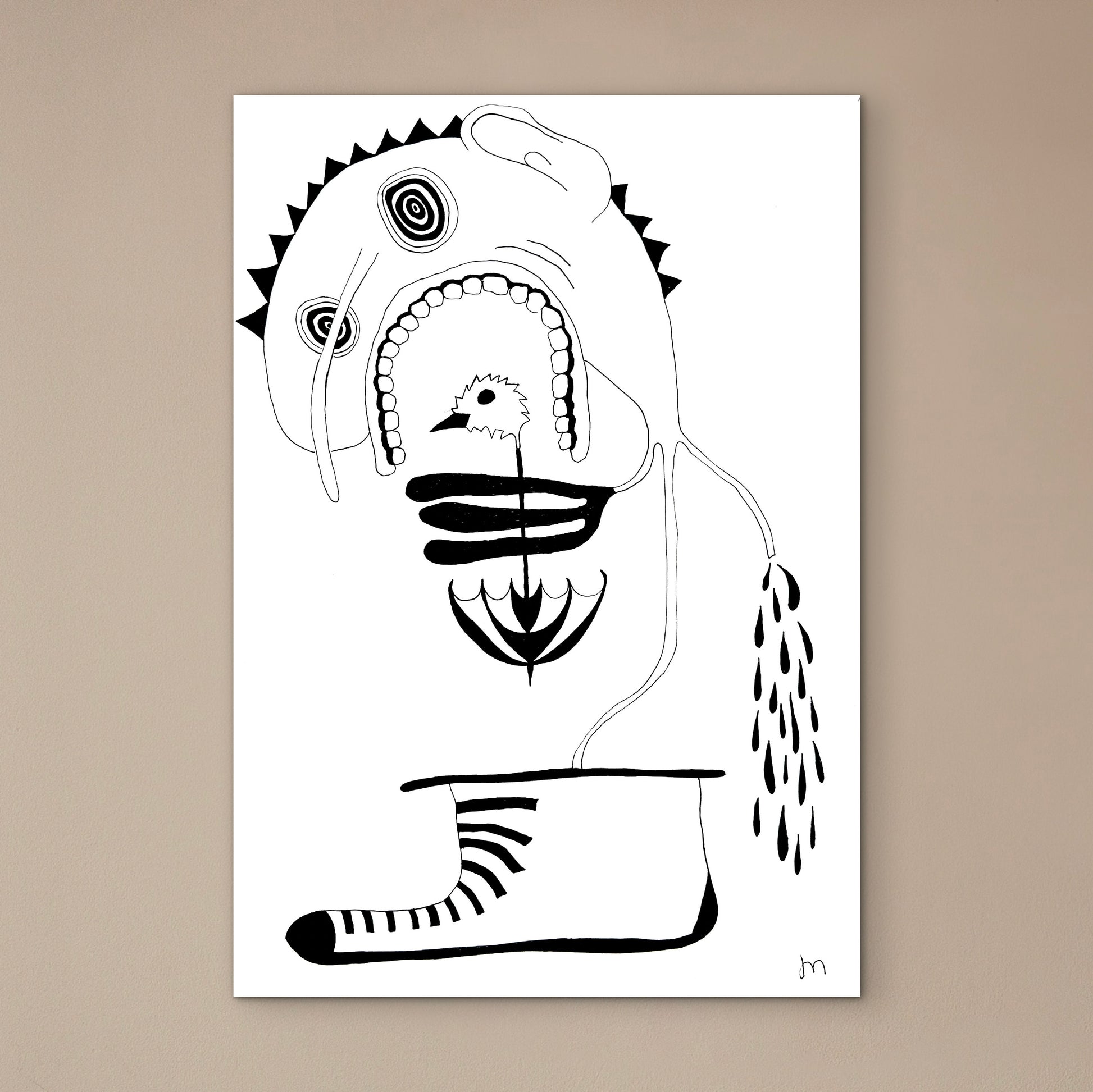 I named this piece Anything because this thing - whatever it is - looks like it could swallow anything. Even a bird. Even an umbrella. I drew it on an eight-hour train ride through Italy, with a black pen and too much time.